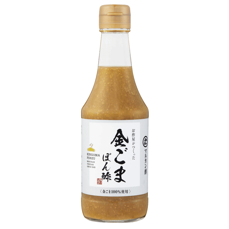 濃厚な香りと深いコクが特徴の金ごまを、すりごま・ねりごまの2種類使用しました。 醸造酢に加え、お酢屋ならではの「静置発酵の黒酢」で旨味を広げています。 しゃぶしゃぶ、野菜サラダ、蒸し鶏、麵類などに。